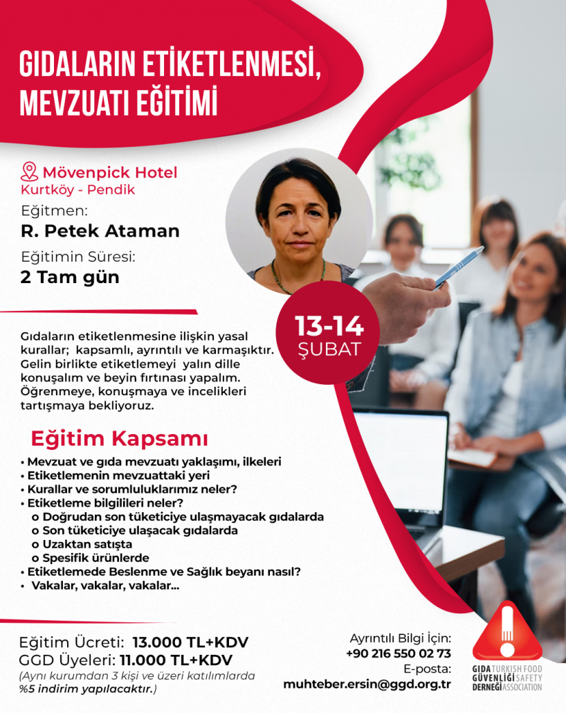 Gıdaların etiketlenmesi konusunda derinlemesine bilgi edinmek ve mevzuatla ilgili güncel detayları öğrenmek ister misiniz? Petek Ataman eğitmenliğinde 2 gün sürecek eğitimimize sizleri bekliyoruz!