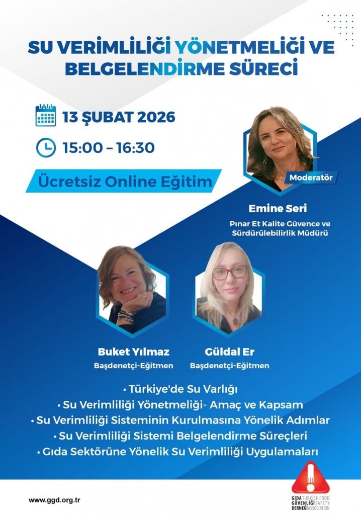 Gıda Güvenliği Derneği olarak düzenlediğimiz bu ücretsiz online eğitimde, su verimliliği yönetmeliğinden belgelendirme süreçlerine kadar pek çok kritik başlığı ele alıyoruz.